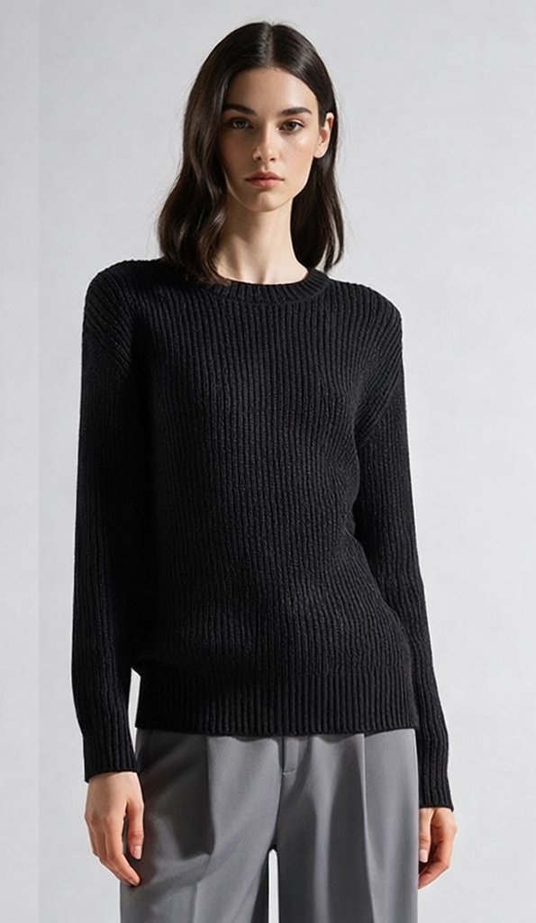 A timeless ribbed knit crew neck sweater designed for effortless everyday elegance. Crafted from luxuriously soft 100 % cashmere with a comfortable stretch fit, it features a classic round neckline and full-length sleeves. Perfect for casual wear or smart layering, this sweater pairs beautifully with tailored trousers or denim for a clean, modern look.