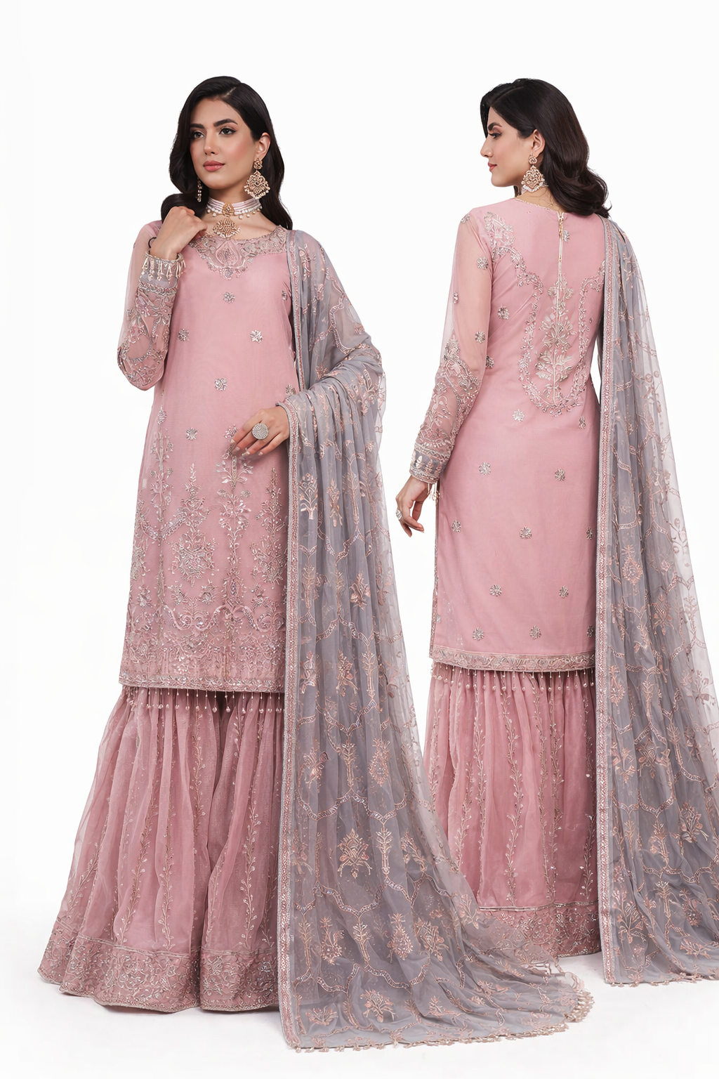 Gharara: Sequins Embroidered Net