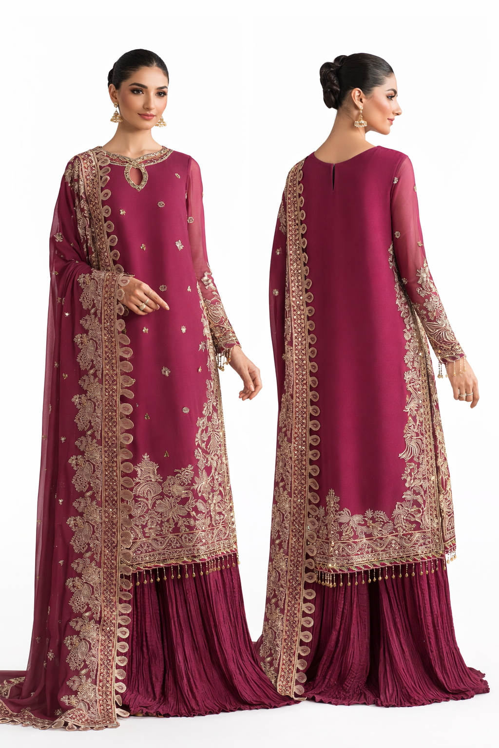 Embroidered Daman Front & Back Lace