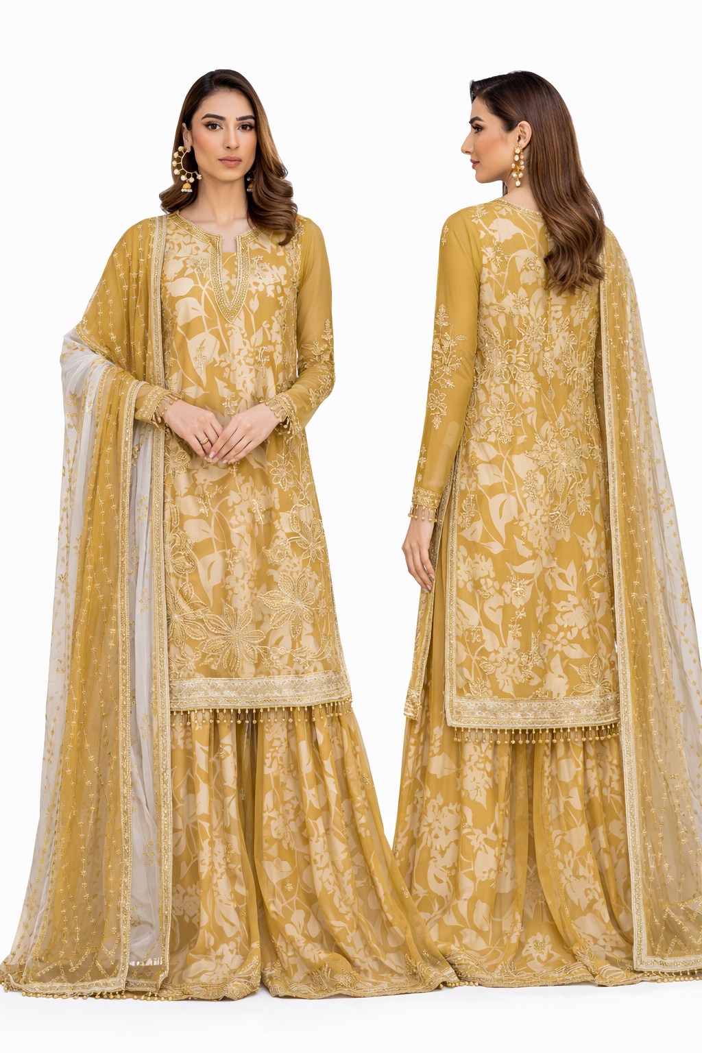 Sequins Embroidered Long Sides (2 Sides) Yellow