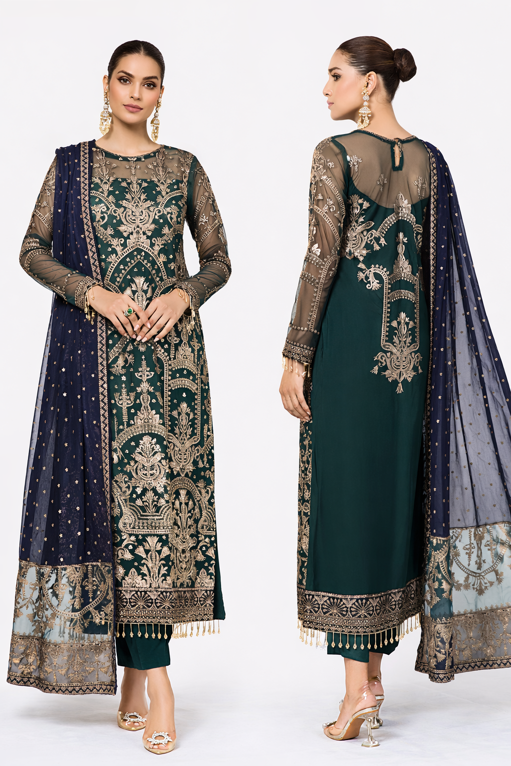 -Green Embroidered Pallu (2 Sides)