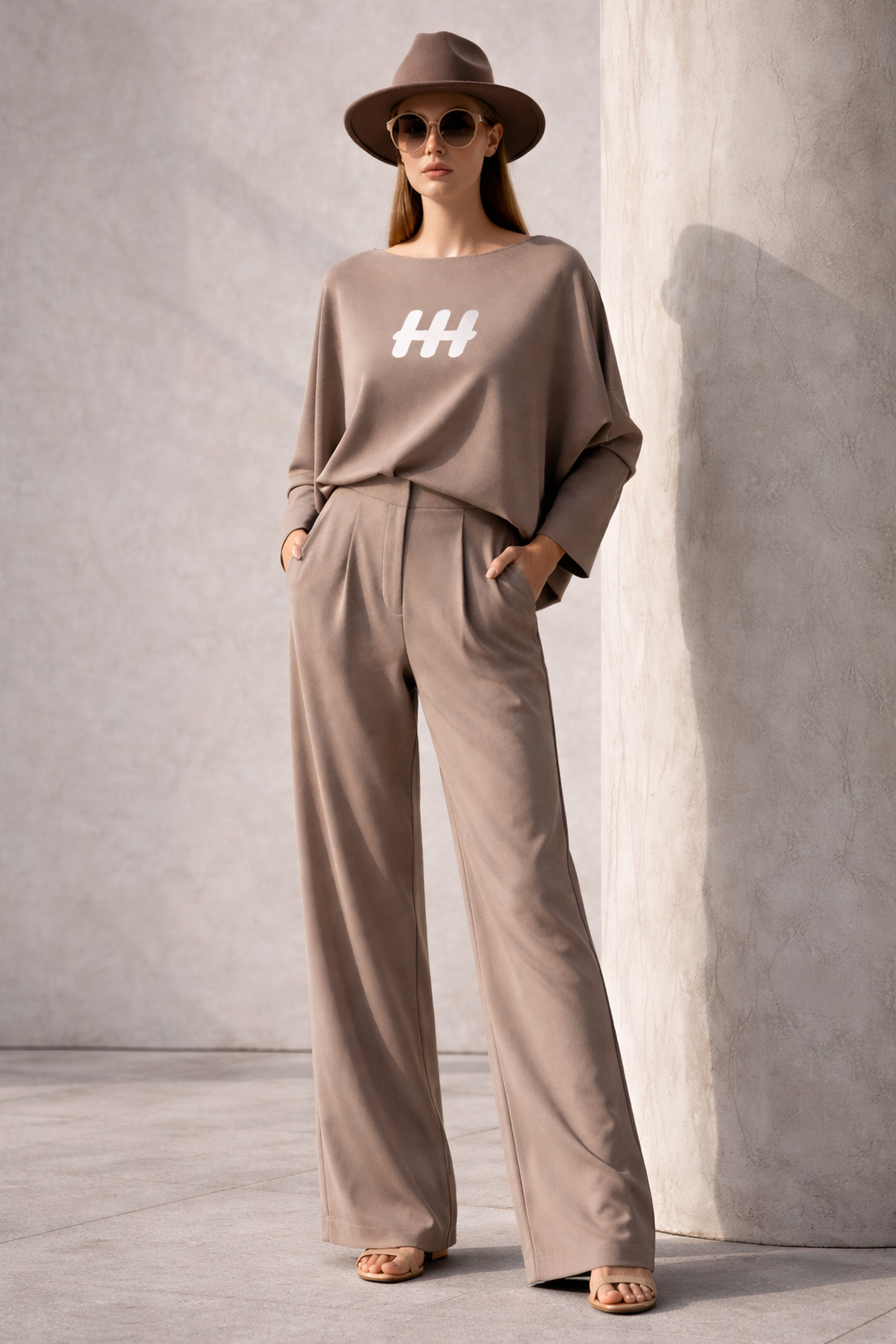 A refined two-piece co-ord set designed for effortless modern style. Featuring a relaxed oversized top worn loose for a contemporary silhouette, paired with tailored high-waist pants for a balanced, elevated look. Crafted from premium soft-touch fabric with smooth drape and subtle texture, this all-over matching set delivers comfort, versatility, and understated luxury—perfect for everyday wear or styled occasions.